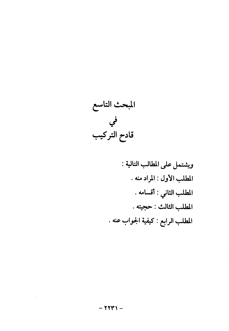 المبحث التاسع في قادح التركيب