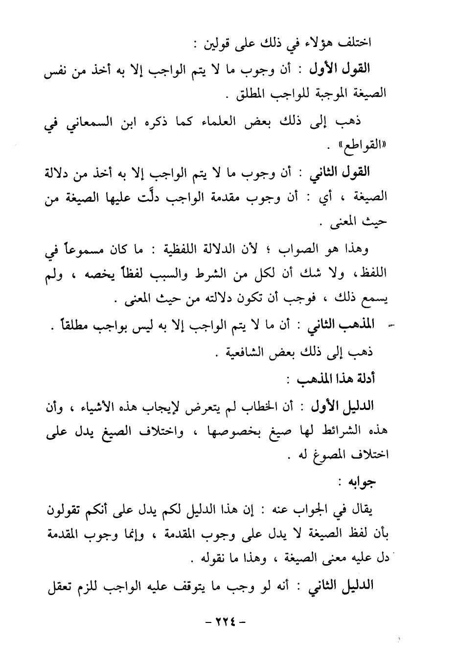 بأن لفظ الصيغة لا يدل على وجوب المقدمة، وإنما وجوب المقدمة