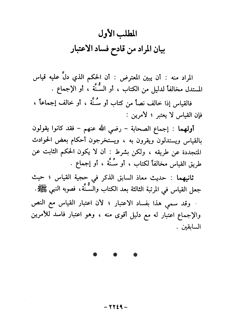 طريق القياس مخالفا لكتاب، أو سُنَّة، أو إجماع.