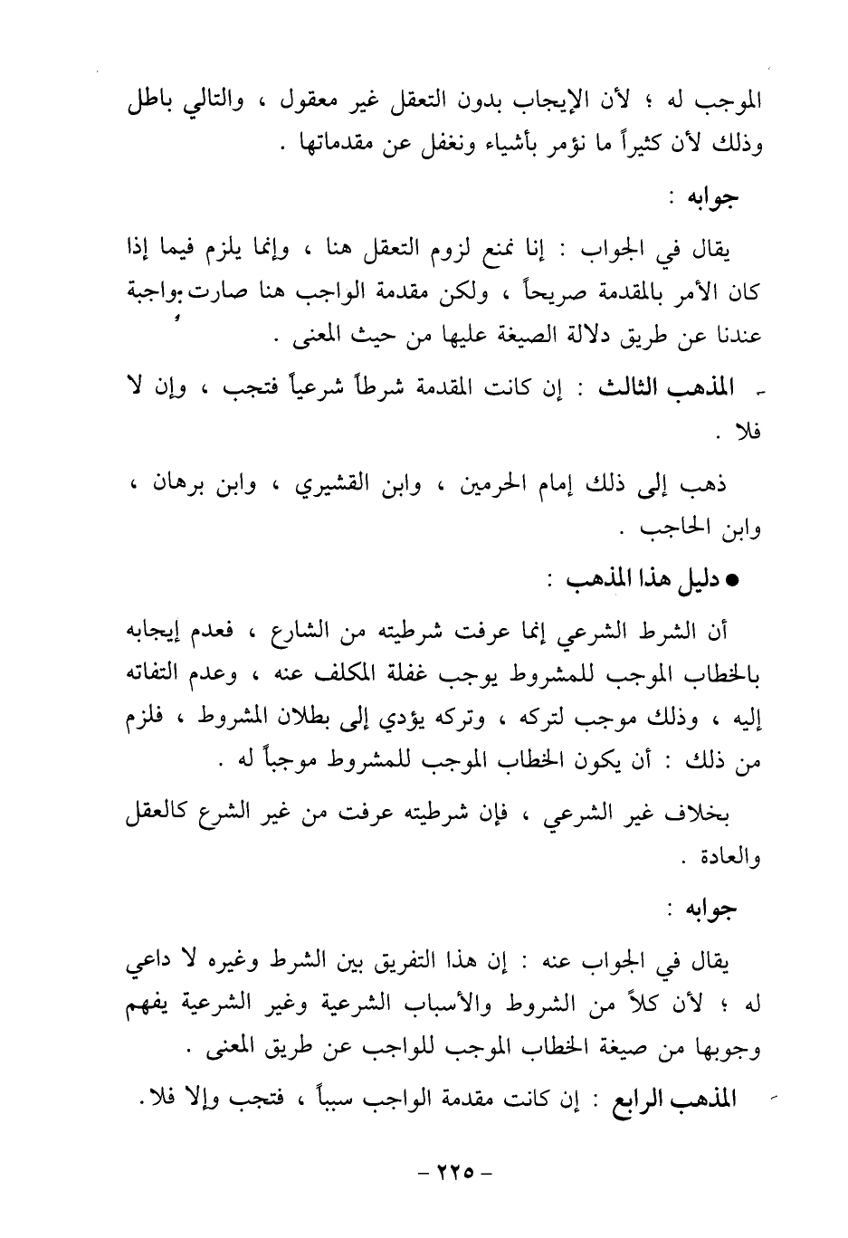 - المذهب الثالث: إن كانت المقدمة شرطا شرعيا فتجب، وإن لا