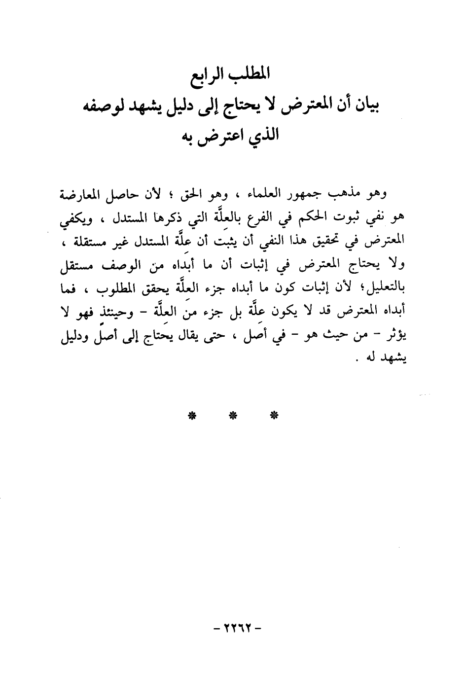 المطلب الرابع بيان أن المعترض لا يحتاج إلى دليل يشهد لوصفه