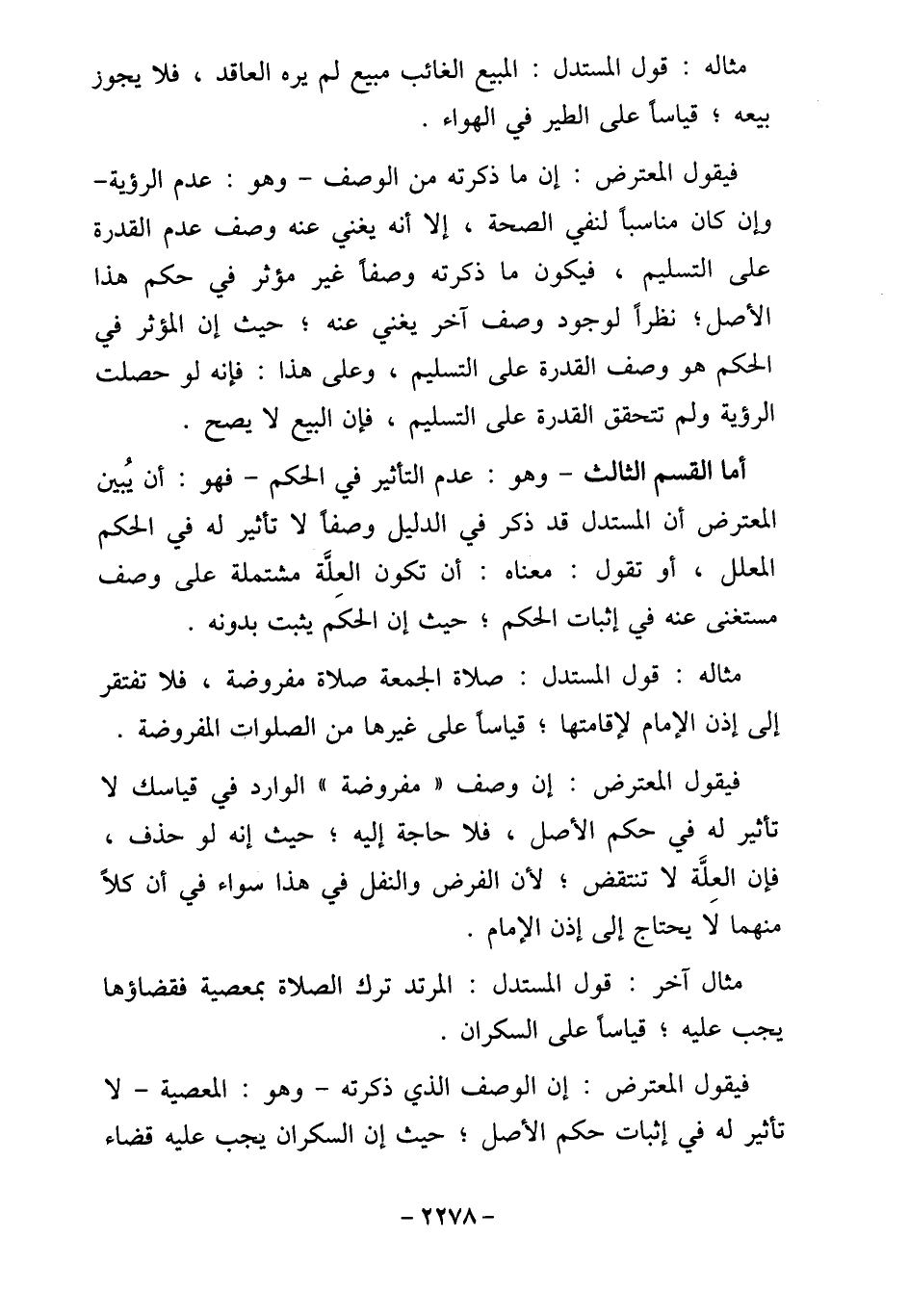 فيقول المعترض: إن وصف " مفروضة " الوارد في قياسك لا