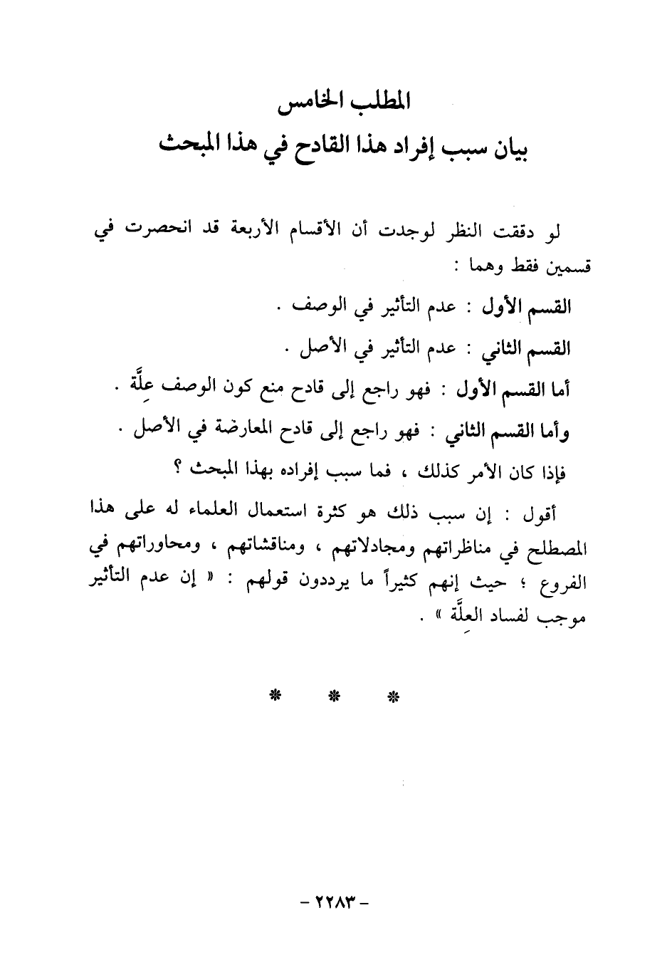 المطلب الخامس بيان سبب إفراد هذا القادح في هذا المبحث