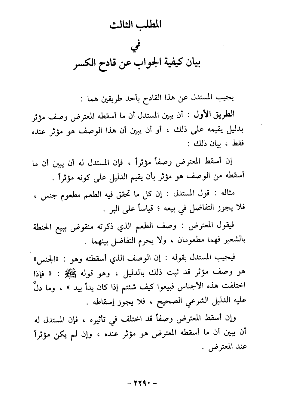 المطلب الثالث في بيان كيفية الجواب عن قادح الكسر