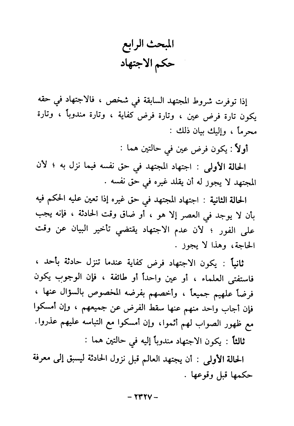 ثانيا: يكون الاجتهاد فرض كفاية عندما تنزل حادثة بأحد،