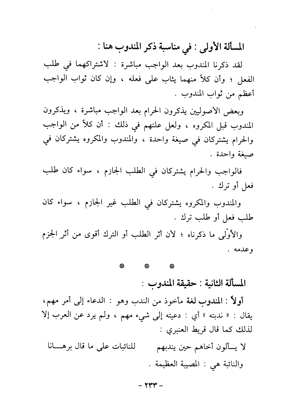 لقد ذكرنا المندوب بعد الواجب مباشرة: لاشتراكهما في طلب