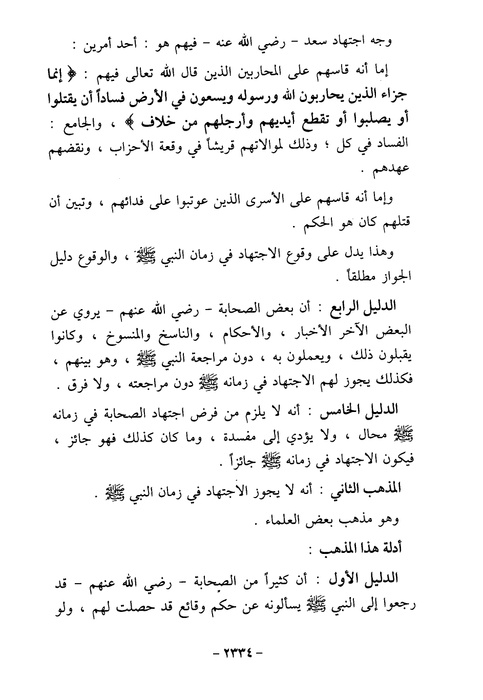 وهذا يدل على وقوع الاجتهاد في زمان النبي - صلى الله عليه وسلم -، والوقوع دليل الجواز مطلقاً.