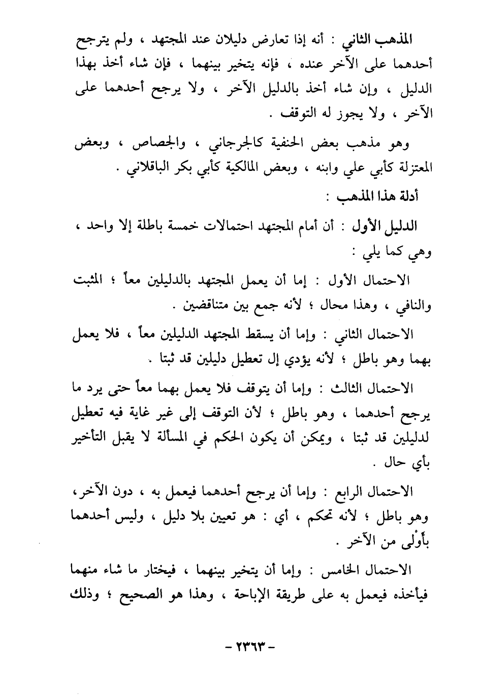 الدليل الأول: أن أمام المجتهد احتمالات خمسة باطلة إلا واحد،