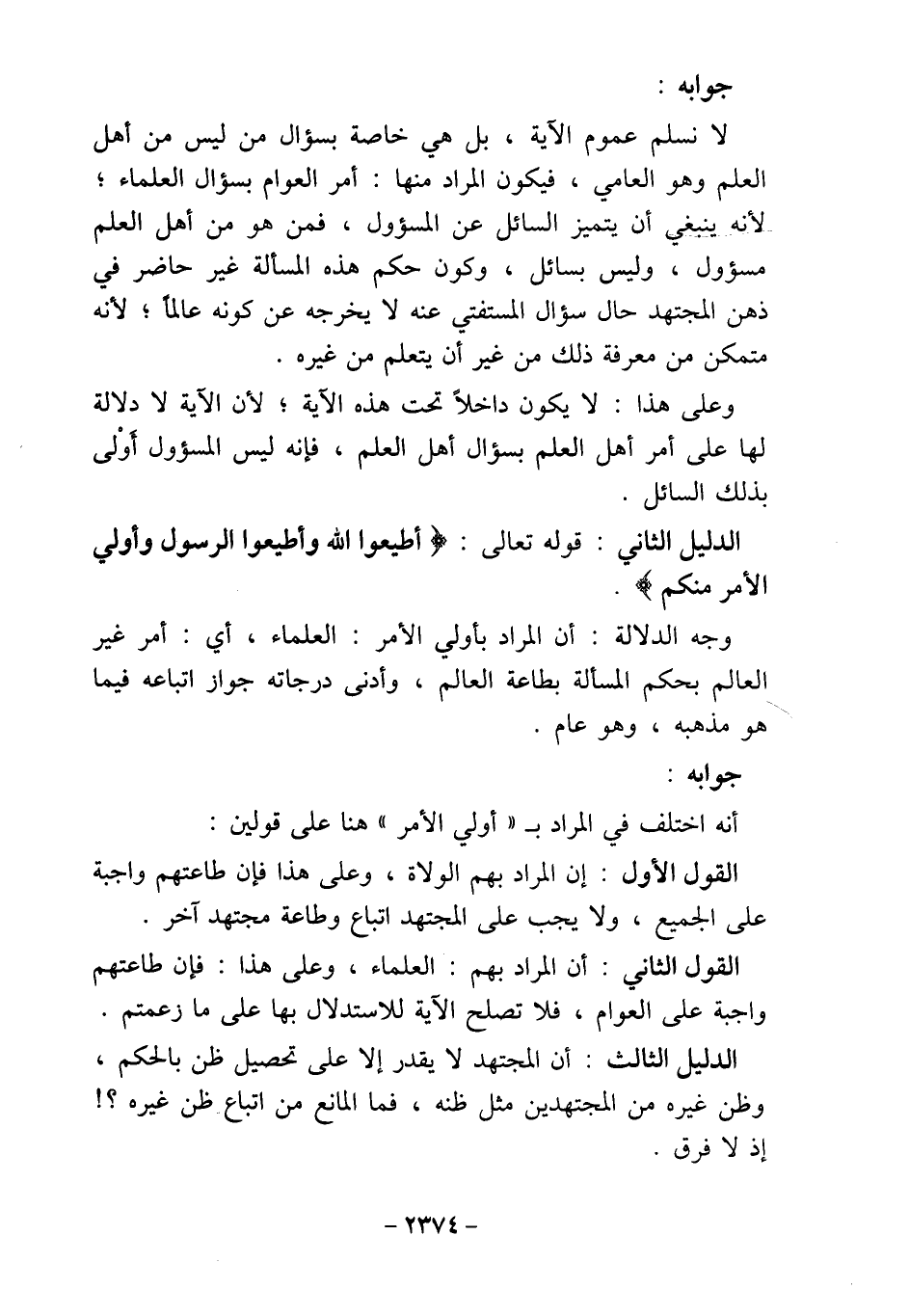 لها على أمر أهل العلم بسؤال أهل العلم، فإنه ليس المسؤول أوْلى