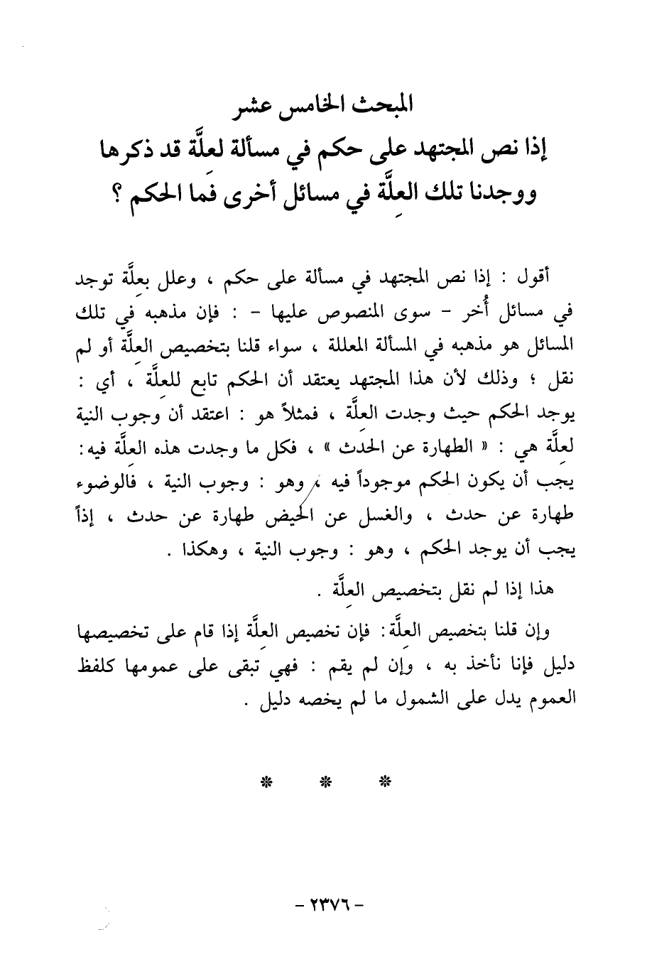 المبحث الخامس عشر إذا نص المجتهد على حكم في مسألة لعلَّة قد ذكرها