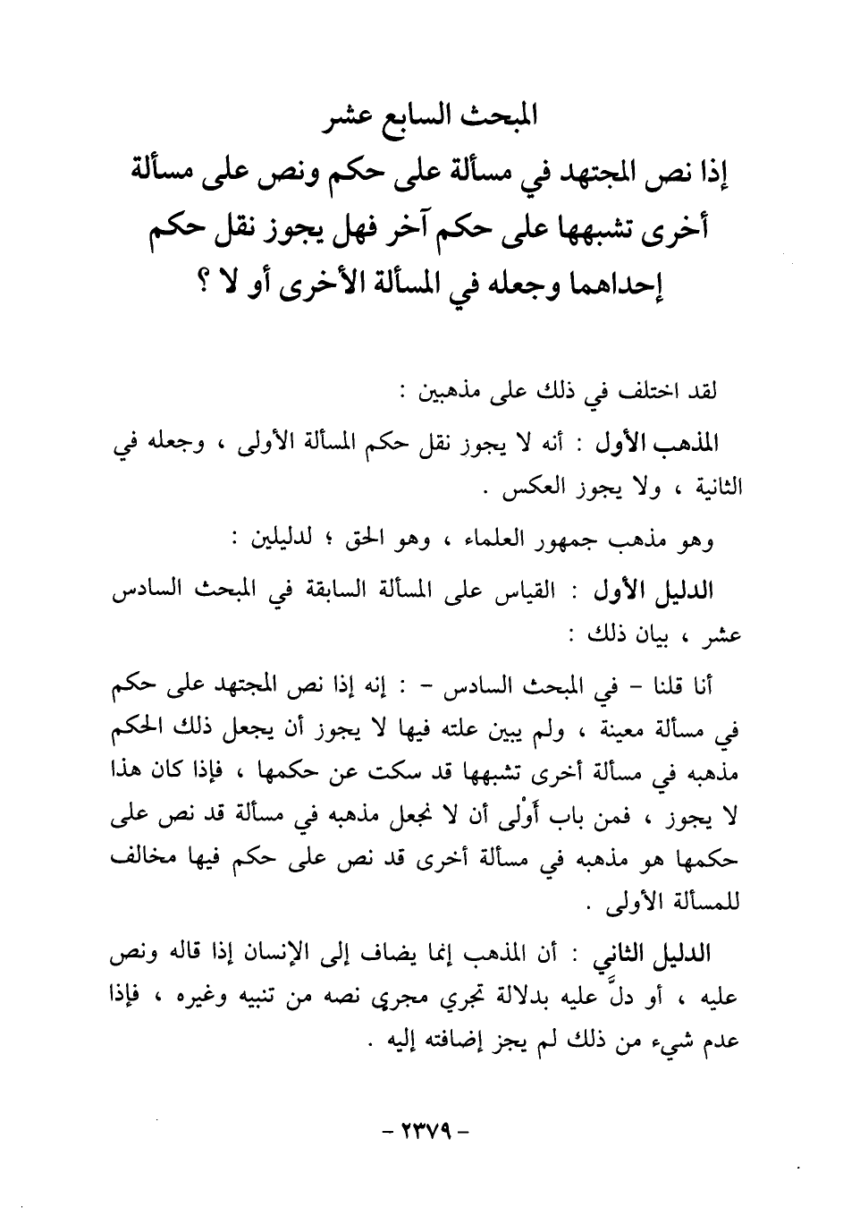الدليل الأول: القياس على المسألة السابقة في المبحث السادس