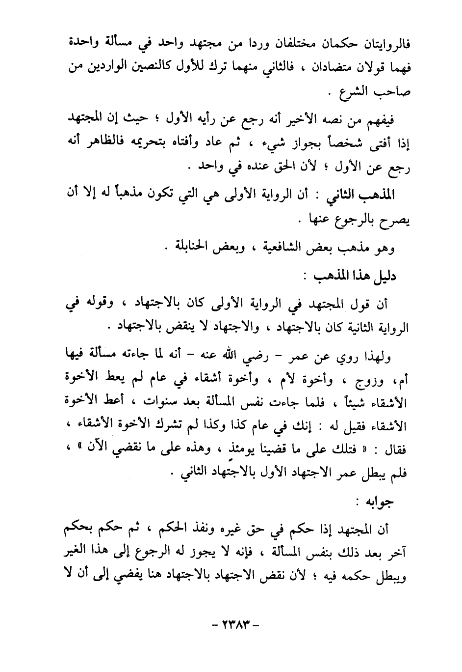فلم يبطل عمر الاجتهاد الأول بالاجتهاد الثاني.