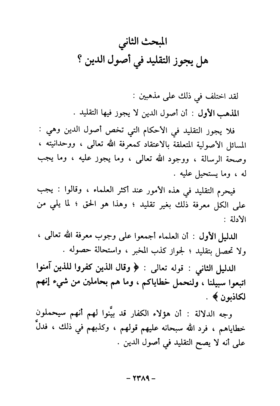 المبحث الثاني هل يجوز التقليد في أصول الدين؟