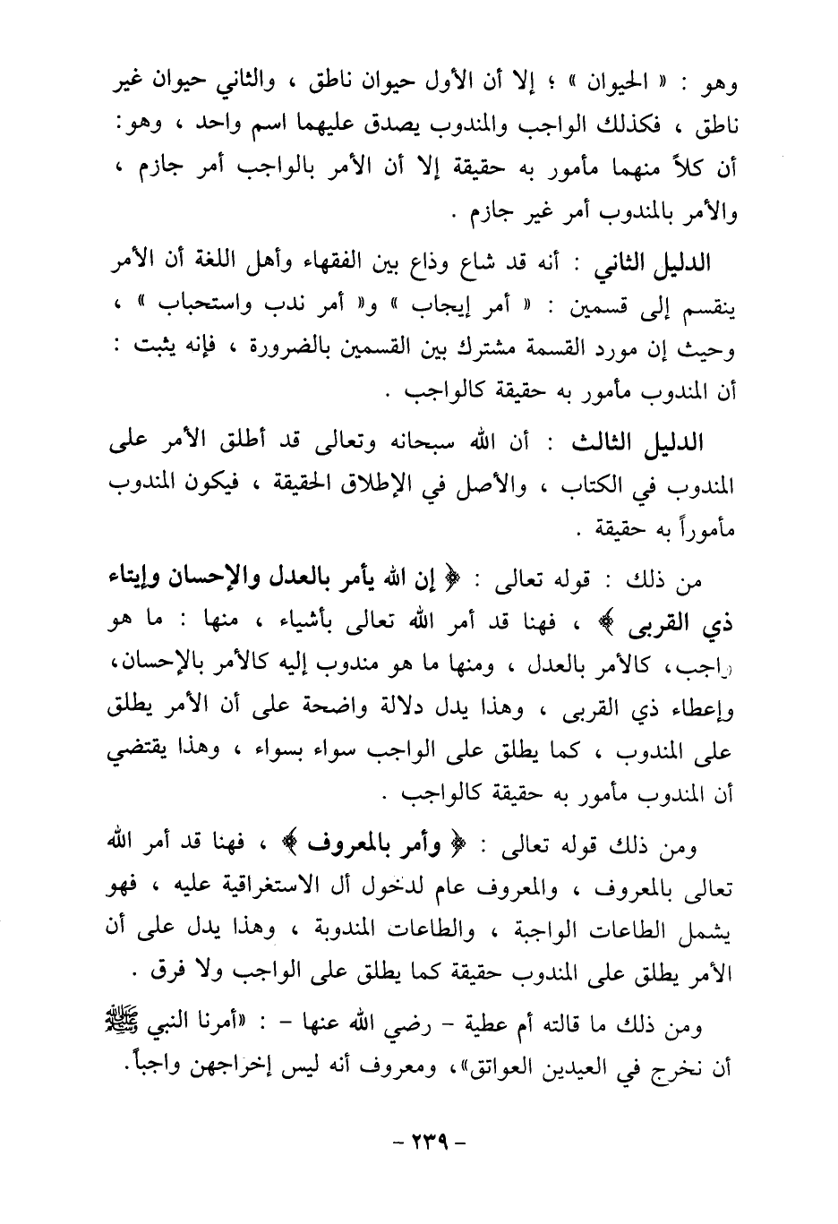 واجب، كالأمر بالعدل، ومنها ما هو مندوب إليه كالأمر بالإحسان،