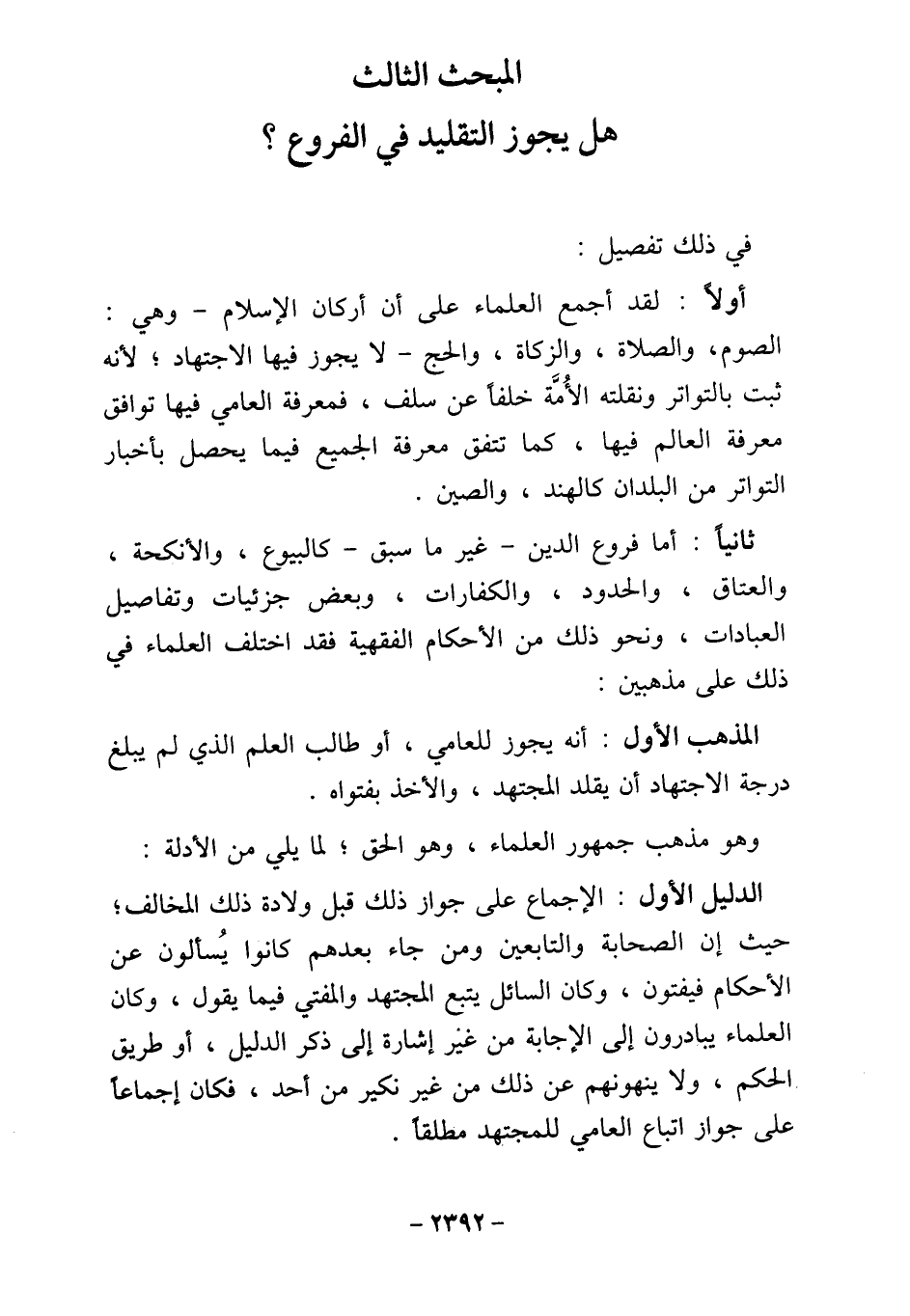 المبحث الثالث هل يجوز التقليد في الفروع؟