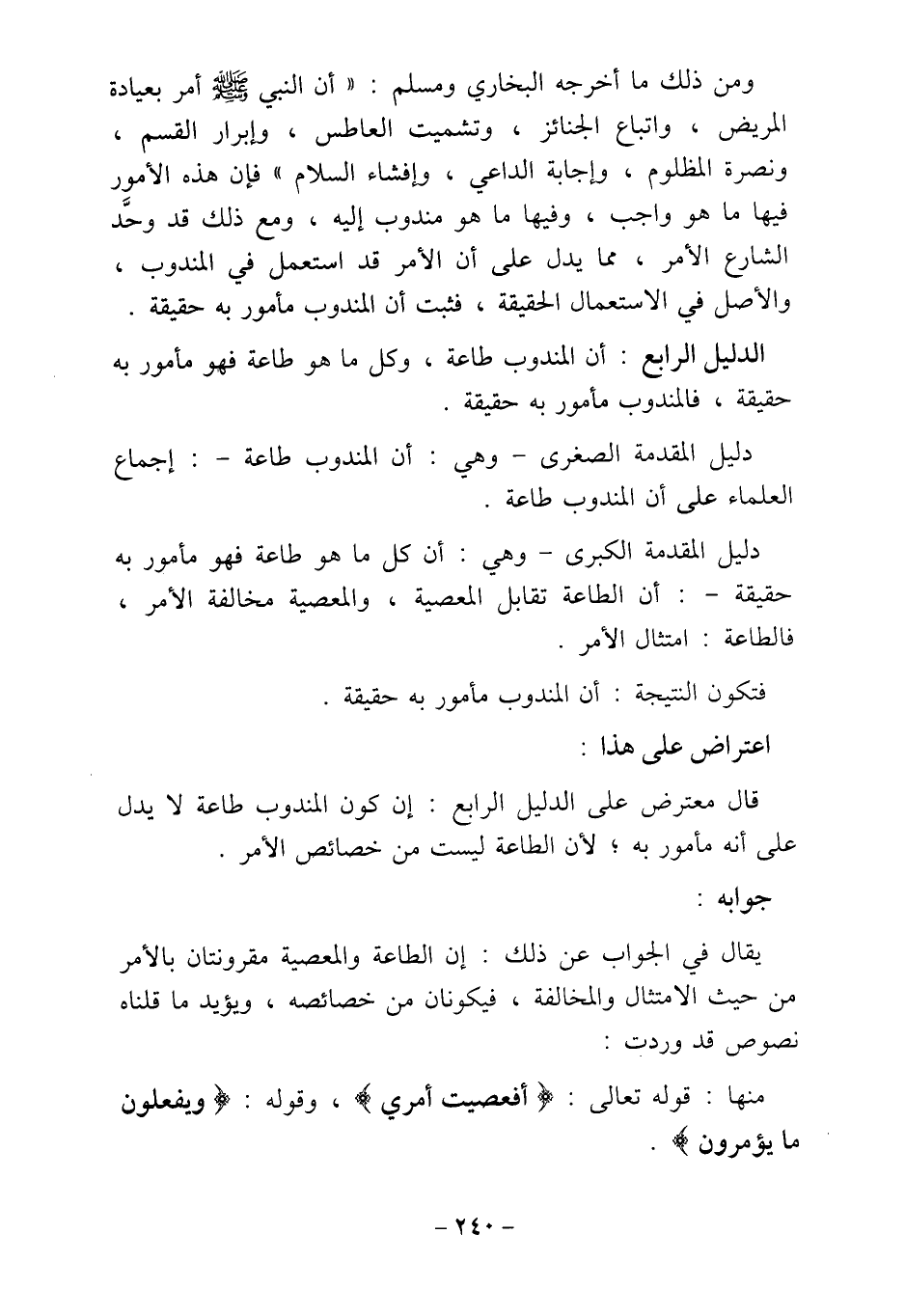 الدليل الرابع: أن المندوب طاعة، وكل ما هو طاعة فهو مأمور به