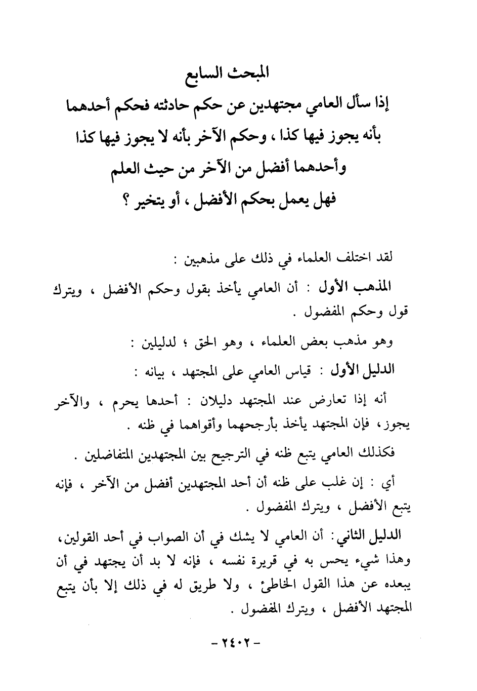 المبحث السابع إذا سأل العامي مجتهدين عن حكم حادثته فحكم أحدهما