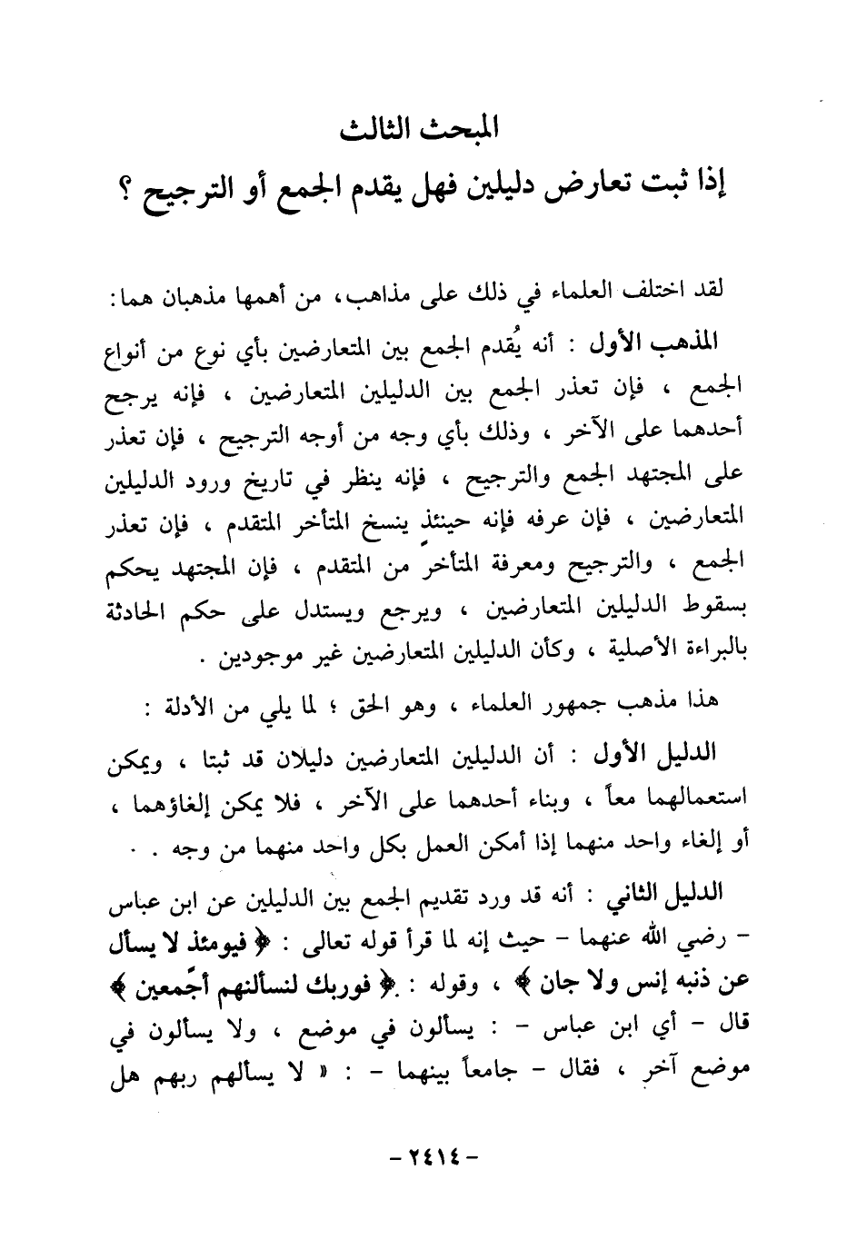 المبحث الثالث إذا ثبت تعارض دليلين فهل يقدم الجمع أو الترجيح؟