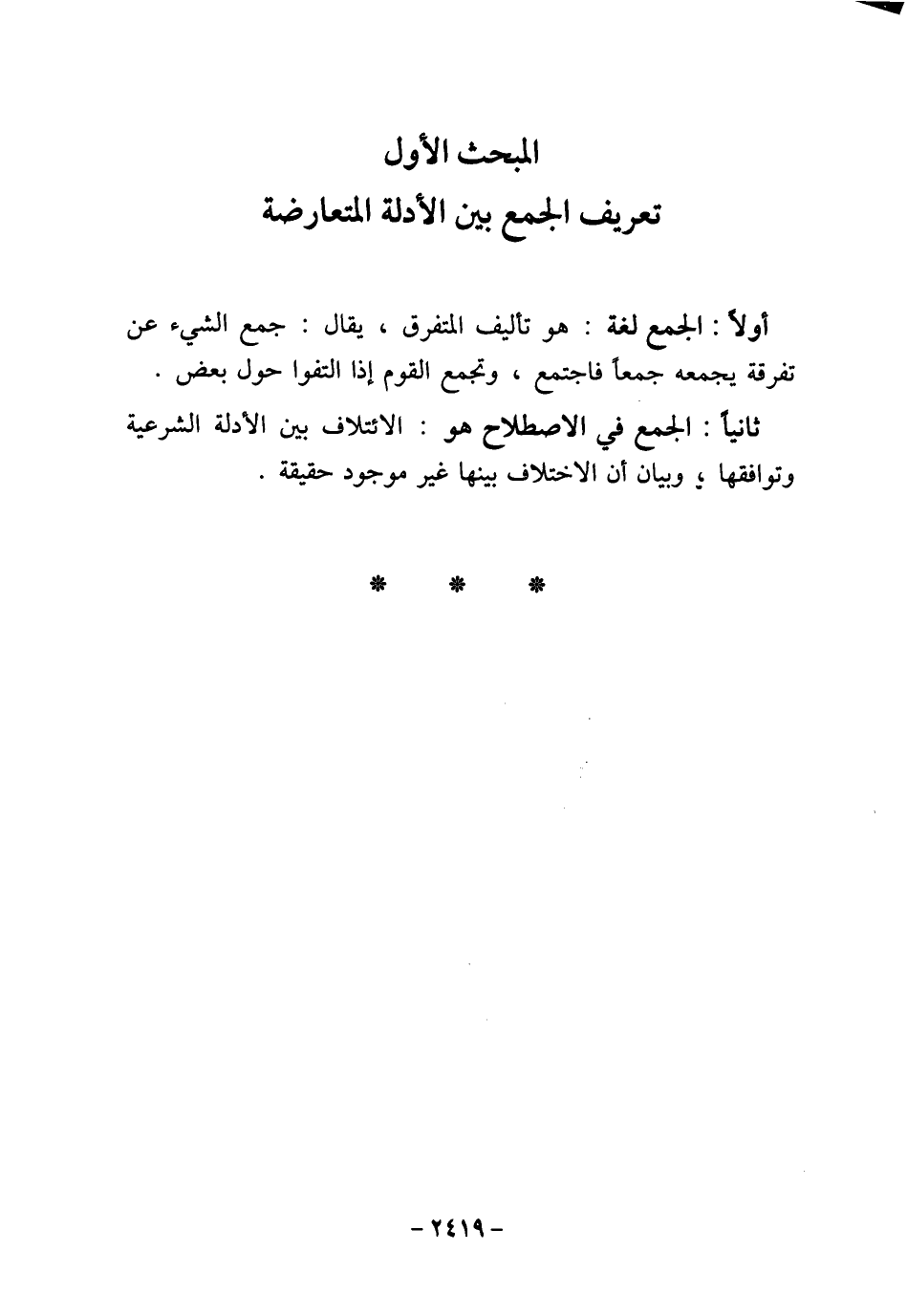 المبحث الأول تعريف الجمع بين الأدلة المتعارضة