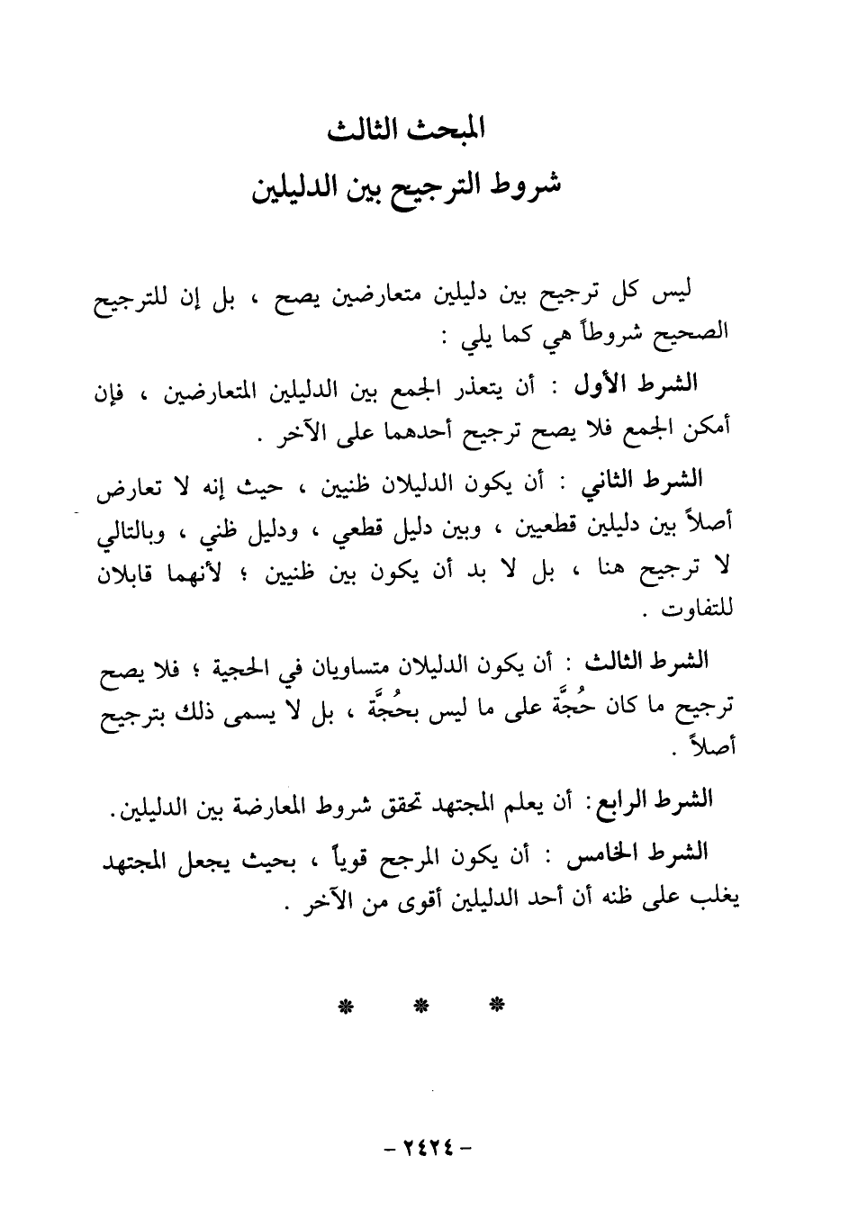 الشرط الرابع: أن يعلم المجتهد تحقق شروط المعارضة بين الدليلين.