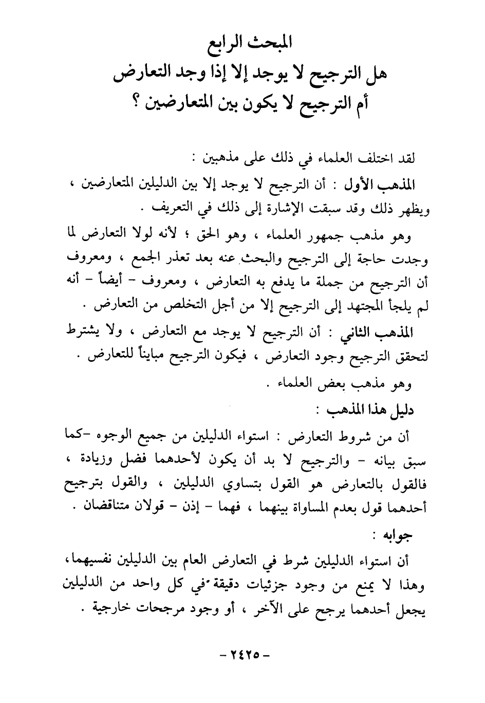 المبحث الرابع هل الترجيح لا يوجد إلا إذا وجد التعارض