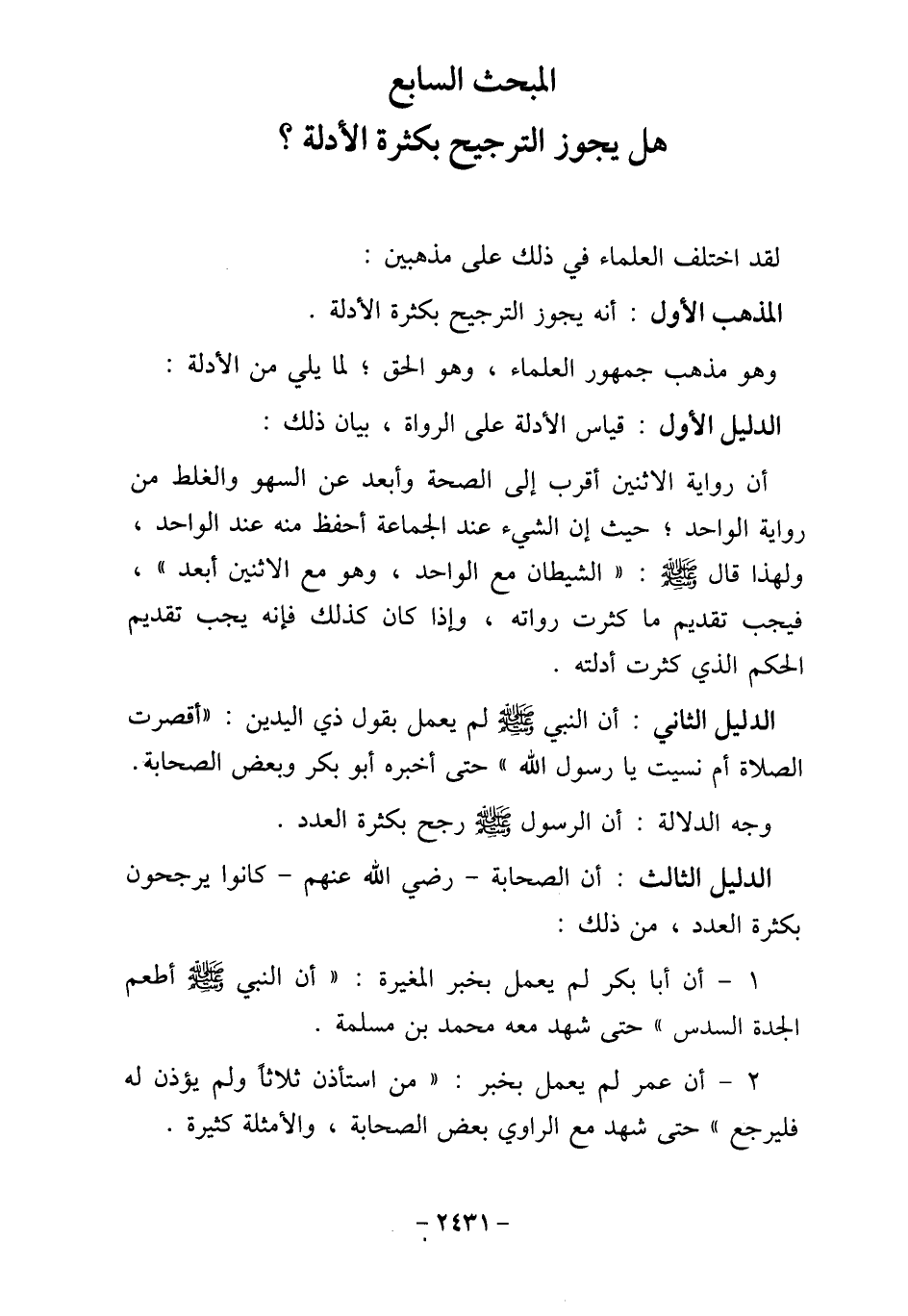 المبحث السابع هل يجوز الترجيح بكثرة الأدلة؟