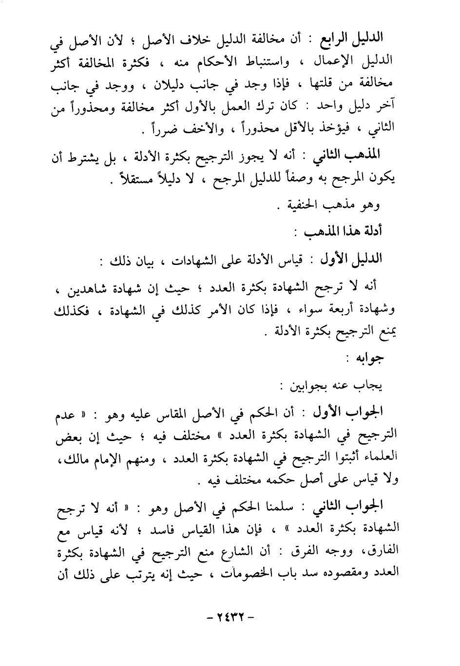 الترجيح في الشهادة بكثرة العدد " مختلف فيه؛ حيث إن بعض