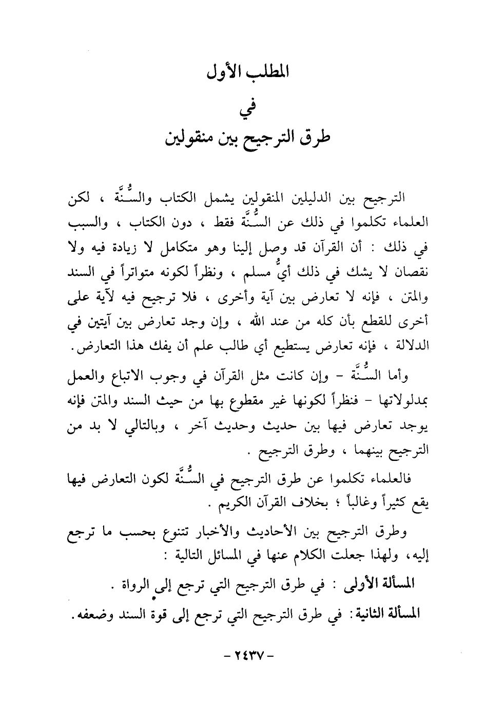 المسألة الثانية: في طرق الترجيح التي ترجع إلى قوة السند وضعفه.