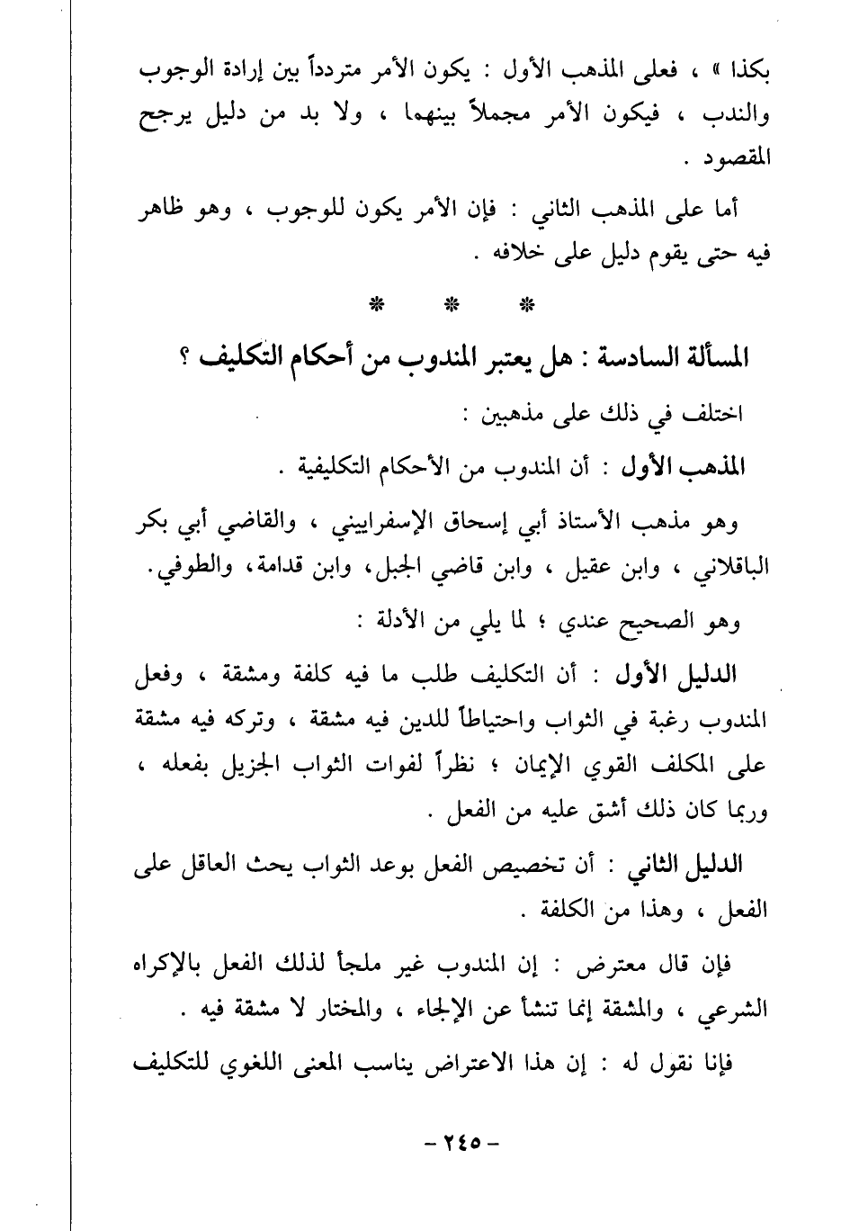 المسألة السادسة: هل يعتبر المندوب من أحكام التكليف؟