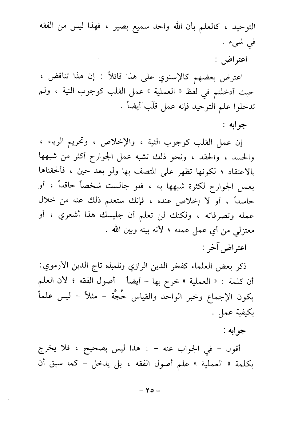 أن كلمة: " العملية " خرج بها - أيضاً - أصول الفقه، لأن العلم