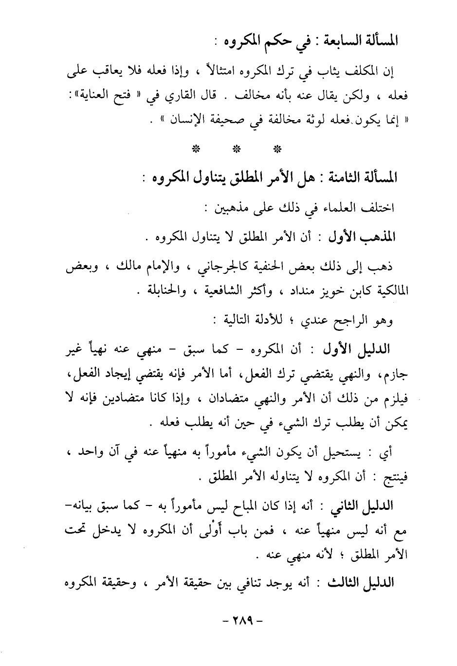 المسألة السابعة: في حكم المكروه: