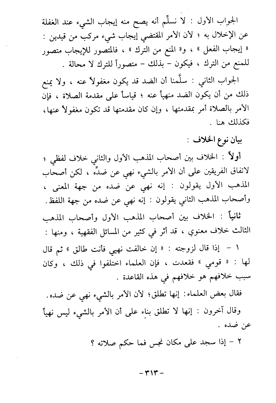 الجواب الثاني: سلَّمنا أن الضد قد يكون مغفولاً عنه، ولا يمنع