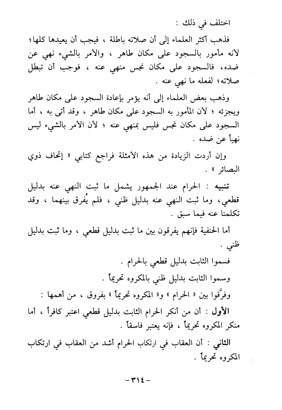 تنبيه: الحرام عند الجمهور يشمل ما ثبت النهي عنه بدليل