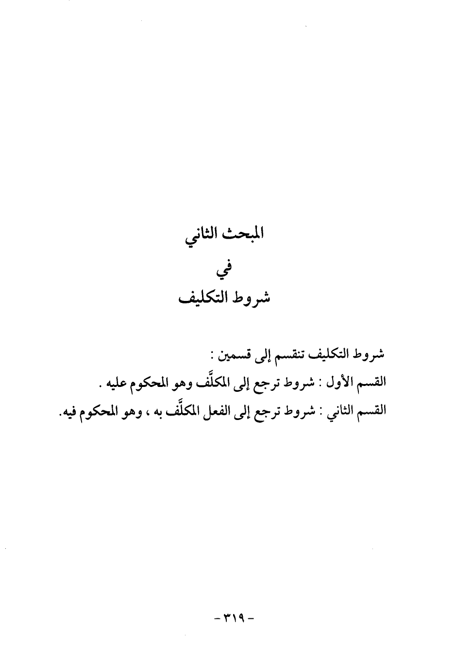 القسم الثاني: شروط ترجع إلى الفعل المكلَّف به، وهو المحكوم فيه.