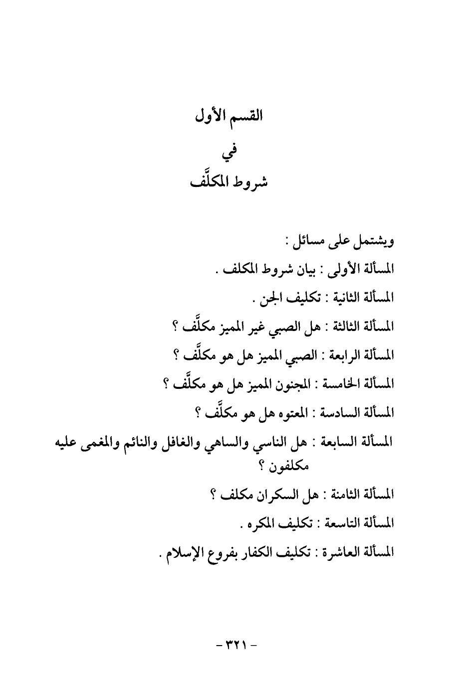المسألة الأولى: بيان شروط المكلف.