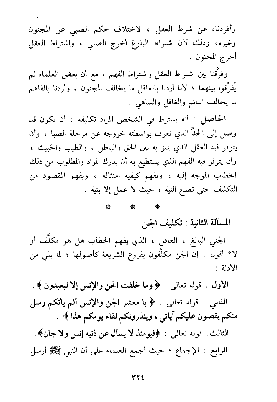 أقول: إن الجن مكلَّفون بفروع الشريعة كأصولها، لما يلي من