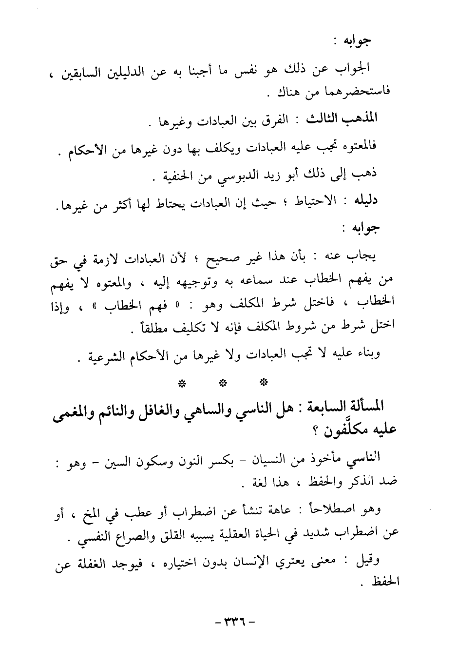 المسألة السابعة: هل الناسي والساهي والغافل والنائم والمغمى
