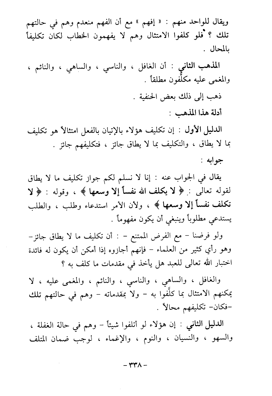 المذهب الثاني: أن الغافل، والناسي، والساهي، والنائم،