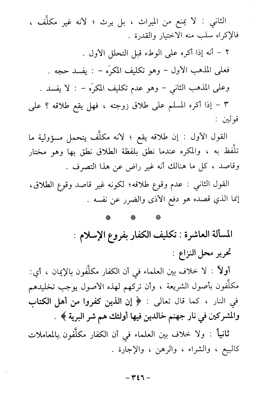 المسألة العاشرة: تكليف الكفار بفروع الإسلام: