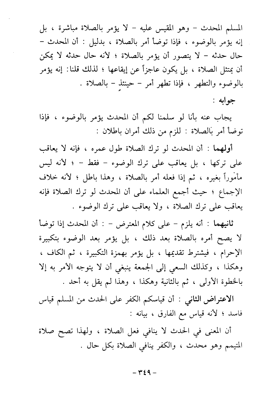 ثانيهما: أنه يلزم - على كلام المعترض -: أن المحدث إذا توضأ