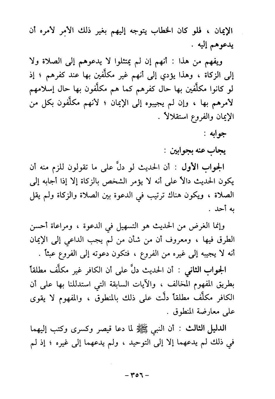 الجواب الثاني: أن الحديث دلَّ على أن الكافر غير مكلَّف مطلقا