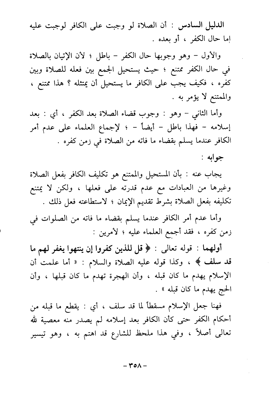 الدليل السادس: أن الصلاة لو وجبت على الكافر لوجبت عليه