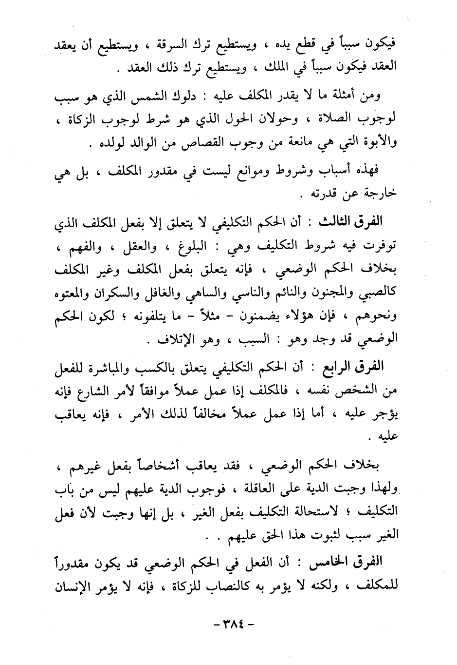 الفرق الرابع: أن الحكم التكليفي يتعلق بالكسب والمباشرة للفعل