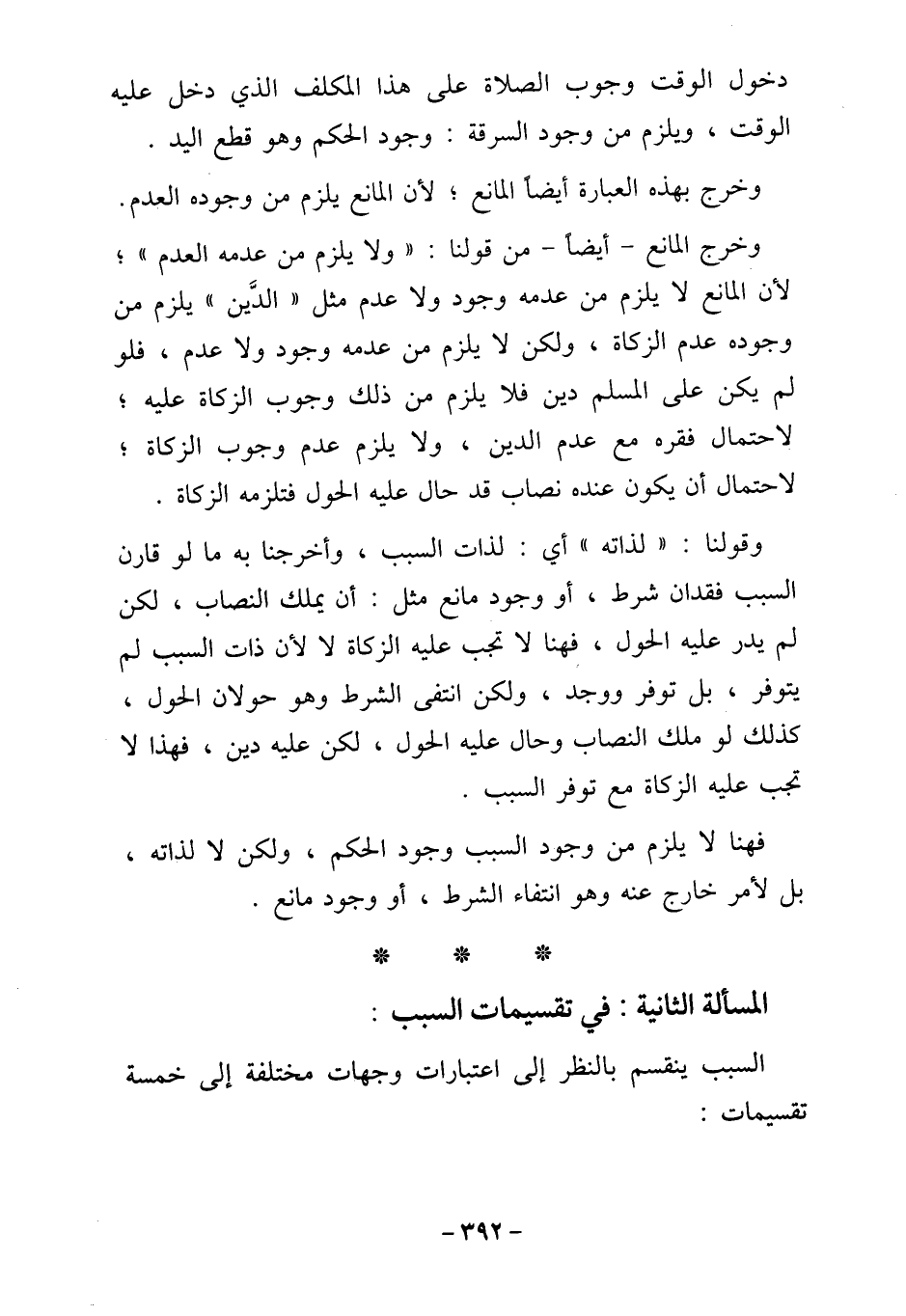 السبب ينقسم بالنظر إلى اعتبارات وجهات مختلفة إلى خمسة