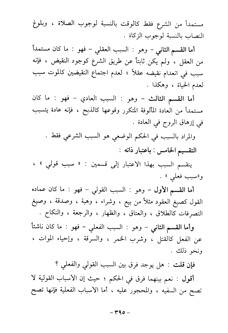 ينقسم السبب بهذا الاعتبار إلى قسمين: " سبب قولي "،