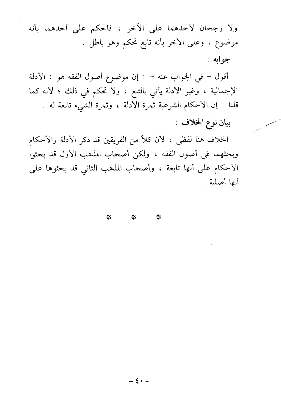 أقول - في الجواب عنه -: إن موضوع أصول الفقه هو: الأدلة