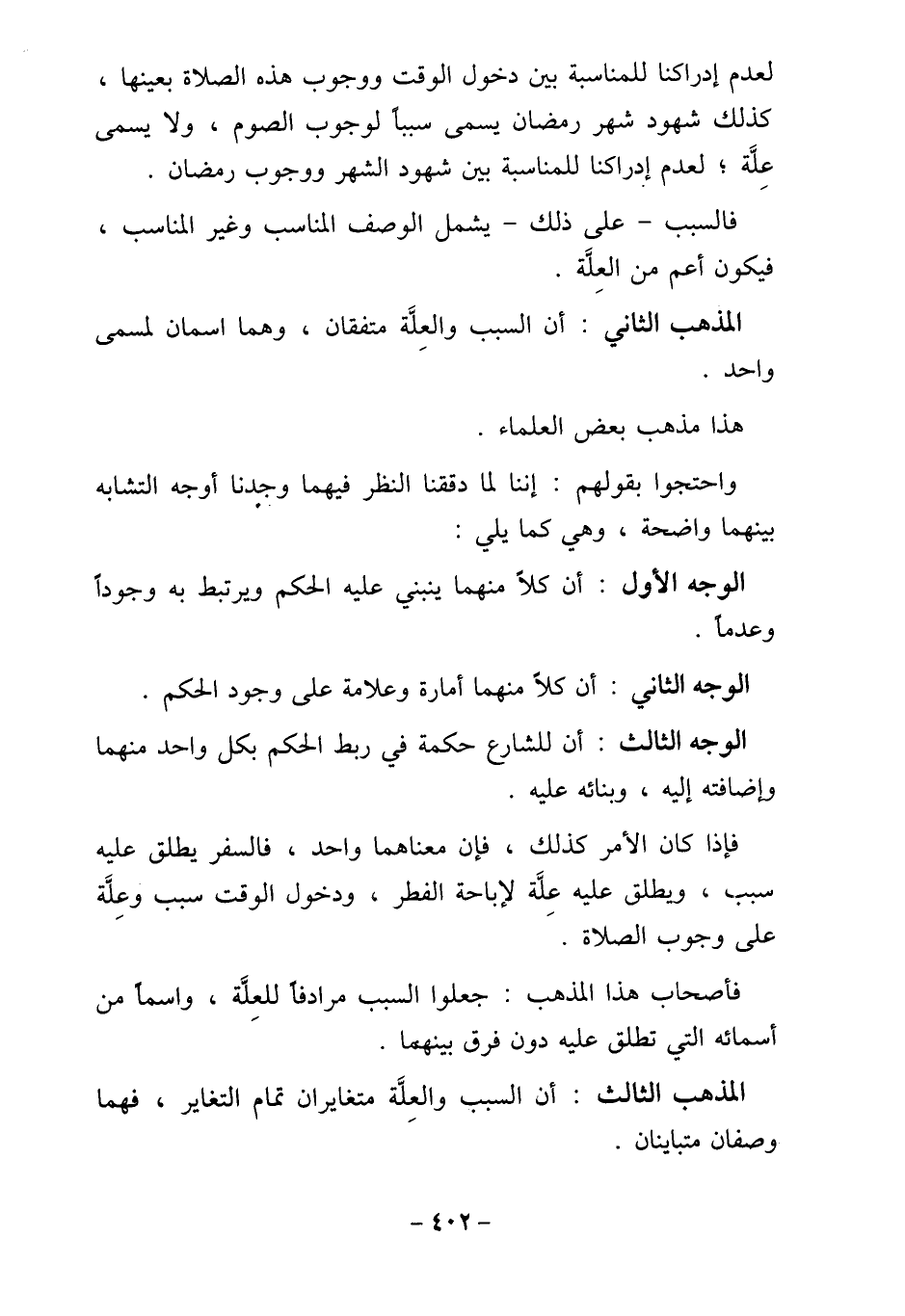 فأصحاب هذا المذهب: جعلوا السبب مرادفا للعلَّة، واسما من