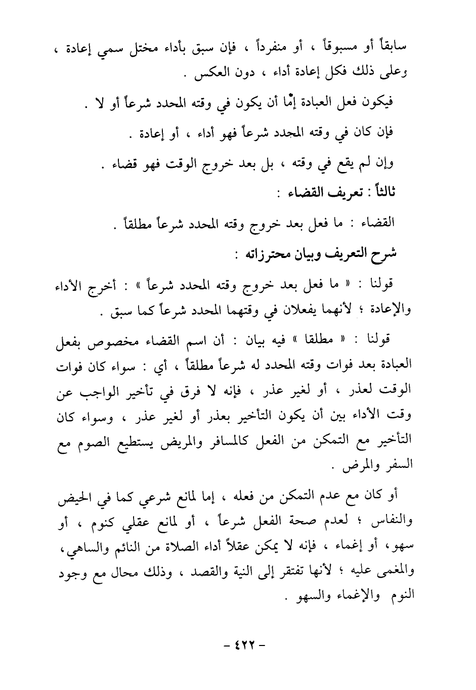 والإعادة، لأنهما يفعلان في وقتهما المحدد شرعا كما سبق.
