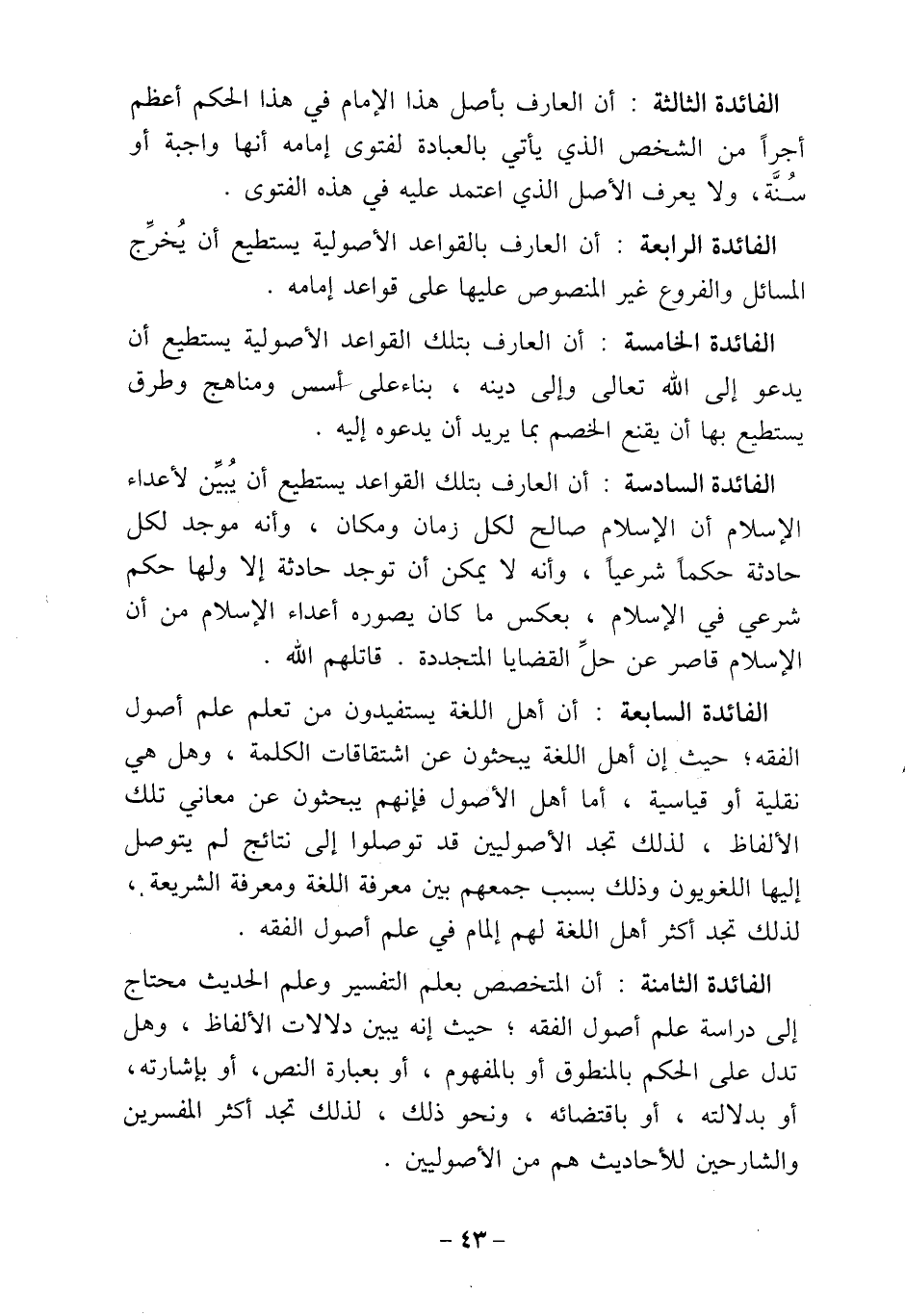 الفائدة الخامسة: أن العارف بتلك القواعد الأصولية يستطيع أن