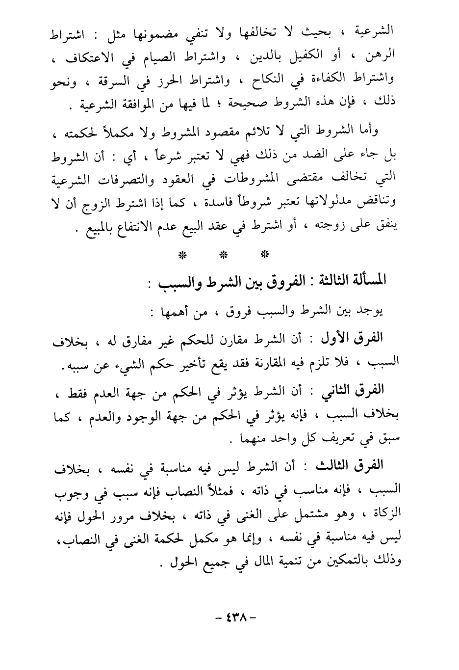 المسألة الثالثة: الفروق بين الشرط والسبب: